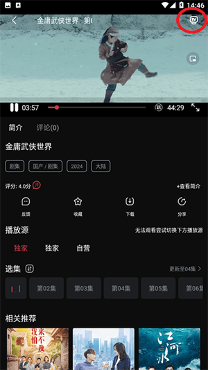 4、点击想要看的影片,软件会自动加载播放,在播放界面,点击右上角的TV图标。