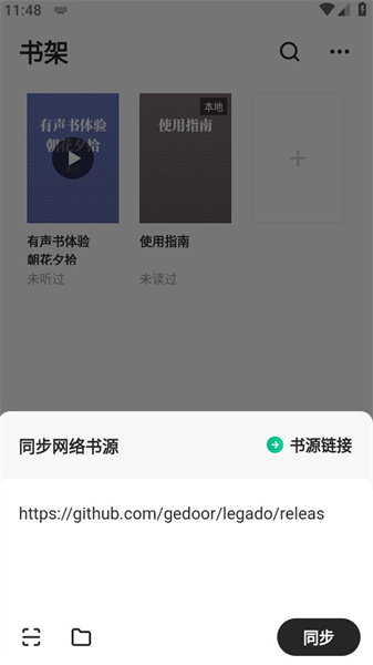 3、在同步书源页面,可以点击右上角的书源链接来获取书源。