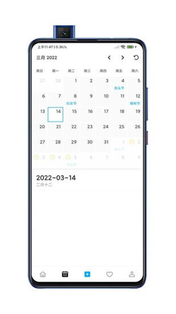 3.通过这款日历记录软件,我们能够查看到阴历和阳历日期。
