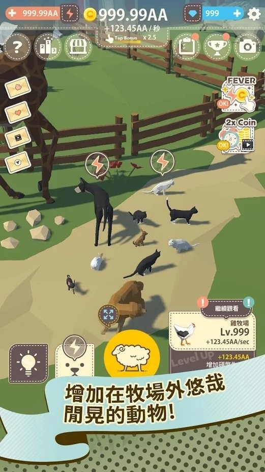 只要开拓容纳新动物的牧场,就能够自动 收集 硬币!享受自动赚钱的悠闲 放置 生活!