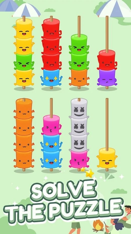 棉花糖的可爱氛围中为您带来玩排序 益智游戏 的乐趣。将所有相同颜色的棉花糖归入一个列,点击移动棉花糖,尽量不要卡住。 如果你的步数用完了,你可以选择重新开始回合或返回几步。