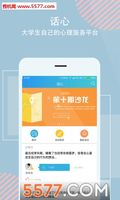 话心是一款非常实用的手机app,是一款专门帮助大学生解决心理问题的网站,可以在这里畅所欲言,说出心中的心结.这里还有专业的人员帮助大学生们.还有非常多的线下聚会,帮助同学们建立自己的心理健康,分层的课程会让同学们更好的接收.
