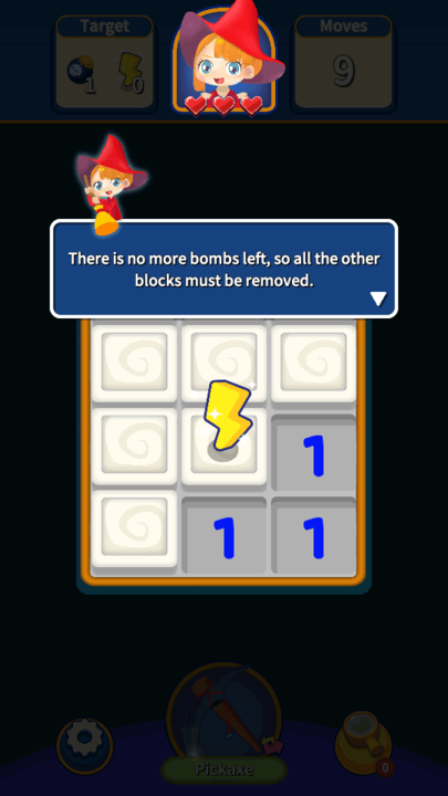 1.破坏不同颜色的方块,找到炸弹,解开谜题并 收集 金币