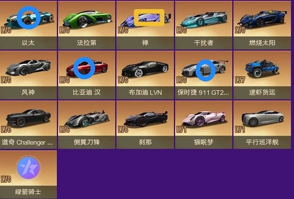 ●布加迪lvn:俱乐部赛车,获取难度较大,可以加个活跃俱乐部打3个赛季的俱乐部赛就能获得。神剑号的下位,弯道较多图可选,利用三次加速充当氮气出弯。被动不错,可以叠极速。