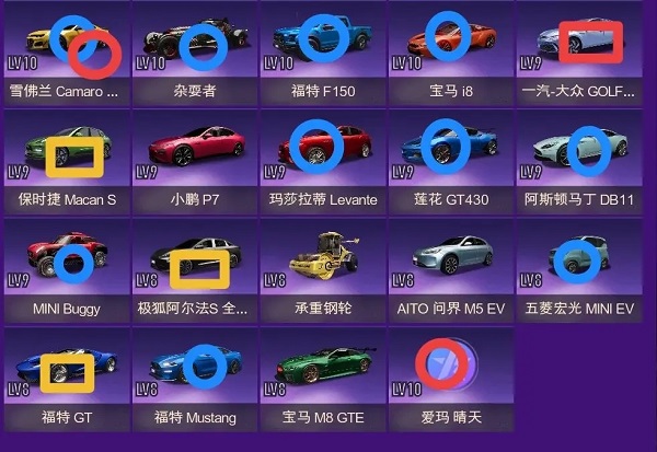 建议培养:宝马X5m、特异点、【mini jcw】、战神、领克03、宝马M4。(图中没有领克03是因为我手贱升阶了……别升,不然亏死)