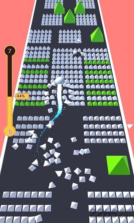 2、避开各种不同颜色的障碍物,顺利抵达终点线则闯关成功。画面流畅,上手简单,超治愈的玩法