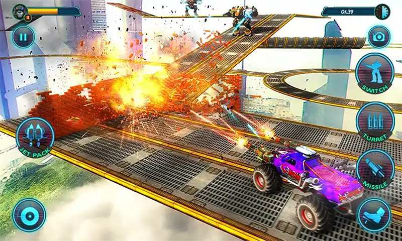 在这个生存的城市让我们看看谁是超级英雄。飞行突变体是装备有未来派武器以摧毁怪物机器人的战争机器。转变成飞行的超级英雄,如天空中的战斗飞机,以拯救未来城市的人性。真正的钢铁车可以向机器人发射导弹和射击。巨大的怪物卡车转变成不可能的红色机器人,可以在空间有限的燃料飞行。在机器人战斗结束后,用激光机枪瞄准飞行不可能的轨道并安全着陆。