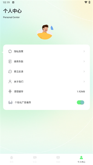 5、切换到个人中心,在这里我们可以对软件进行一系列设置操作。
