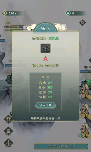 选择崇圣门,点击升级,每次升级每分钟增加0.8位访客;