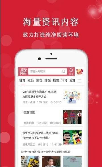 享友资讯是一款非常实用的资讯阅读app,集智能化阅读、社交、本地化相结合,致力于为用户打造优质的阅读环境。这里有各种各样的新闻资讯,各种风格都有,像是好生活、体育、财经、娱乐等各种都有,你可以选择喜欢的内容,同时还可以收藏喜欢的作者,添加好友进行交流,既拓展了社交圈子有丰富了生活资讯 ,增长知识。