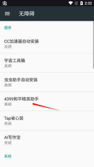 1、打开4399和平精英助手,进入辅助功能板块,打开屏蔽