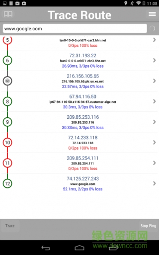 traceRoute安卓版 是一款超好用的手机版路由追踪工具,这款软件能够帮助用户轻松追踪到路由节点问题,有需要的朋友千万不要错过这款软件,赶快来绿色资源网下载使用吧!