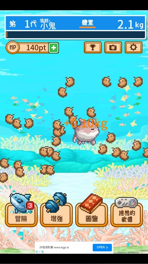3.当曼波鱼进食到一定阶段,就会进化,循环反复,直到曼波鱼成长到最大体重!