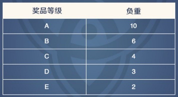 这也就意味着,每个账号每天可以在以上20种奖励中获取3个,而活动期间(32天)最多可以抽取96次。但奖励的获取是有限制的,并不会让你把96个奖品全部带走哦!活动给每个级别的奖品都设置了一个重量: