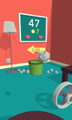 纸垃圾游戏是一款非常适合休闲打发时间的游戏,游戏整体画风还是非常简单的,一个室内的墙角,一个垃圾桶,一个台灯,一把椅子,玩家要做的就是讲揉成一团的垃圾纸丢进垃圾桶,丢进去次数越高分数越高,有一定的挑战性哦!喜欢纸垃圾这类游戏的朋友可以来下载使用!