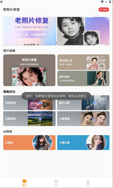 年复一年app是一款专业的老照片修复神器,它可以一键帮你把老旧,模糊,破损的照片进行修复,还可以进行黑白照片智能上色,同时还具备一系列的ai特效功能,支持卡通头像生成,欢迎前来下载!