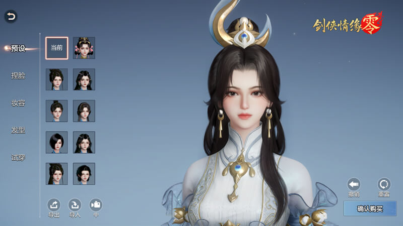 《剑侠情缘·零》既给予了动手能力极强的少侠自由发挥的空间,也贴心地为不太擅长“化妆”的少侠提供了一批预设捏脸——只需一键点击,就能轻松换上江湖味十足的国风武侠造型!