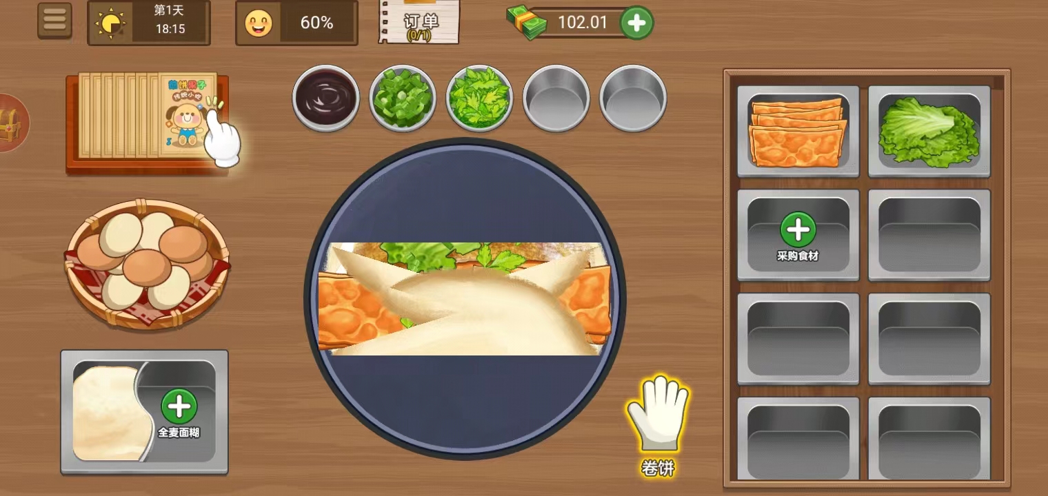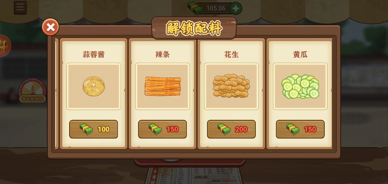 5、制作不同口味的煎饼来满足顾客的所有需求,提高自己煎饼摊的收益解锁更多食材。