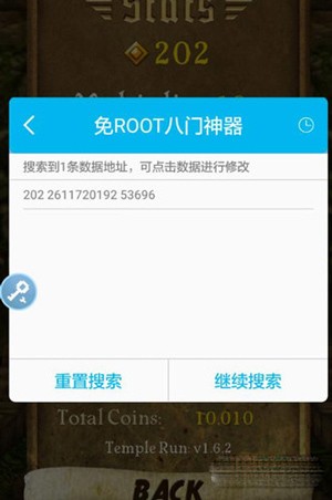 5、什么软件都不是万能的,可能会出现个别游戏不能修改的现象,请理解!下面是具体使用教程! 我们拿神庙逃亡这款游戏举例,大家都知道神庙逃亡的金币非常难肝,但通过八门神器!我们可以在三分钟内获得海量的金币!类似改等级、改人物属性等,只要和具体数字有关的游戏,都能使用下面的方法!