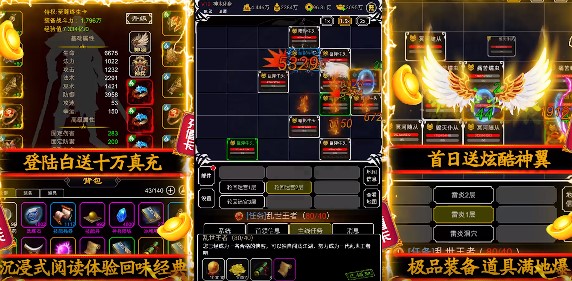 1.创角送V10特权、38888元宝、3888888金币、双倍经验书。