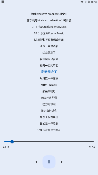 1.支持歌词同步显示,在听音乐的同时,还可以看到歌词,增加听音乐的乐趣。它采用简单的界面设计,易于操作。