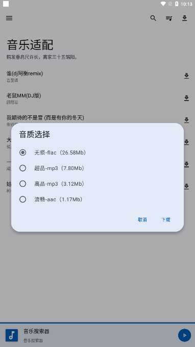 4.支持多种音质选项,包括标准音质、高音质和无损音质,以满足用户对音质的不同需求,并可自由选择下载歌曲。