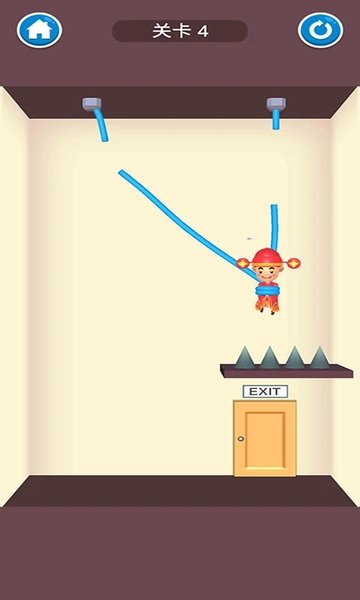 --用手指轻扫绳索并进行切割,救熊孩子逃出房间。