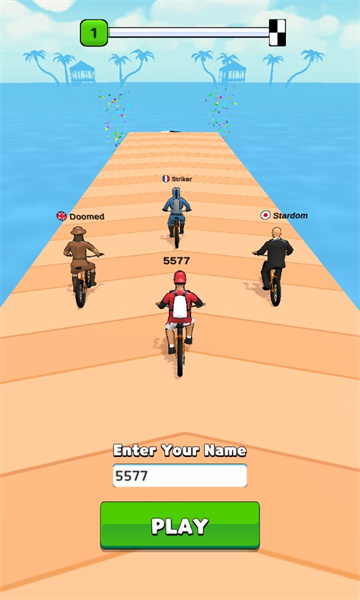 单车水上漂是一款有趣好玩的休闲小游戏,骑着自行车加入到游戏比赛中,与你的对手在游戏中竞技,在游戏赛道中骑行,玩家还能寻找游戏捷径,在闯关中超越你的队伍,成为第一位抵达终点的胜利者,还会为玩家带来丰厚的奖励。尝试更多的游戏玩法,在游戏关卡中不断的挑战,赢得一场场游戏的胜利,成为最强的单车大师,玩家可以在这里收获到更多游戏荣耀。