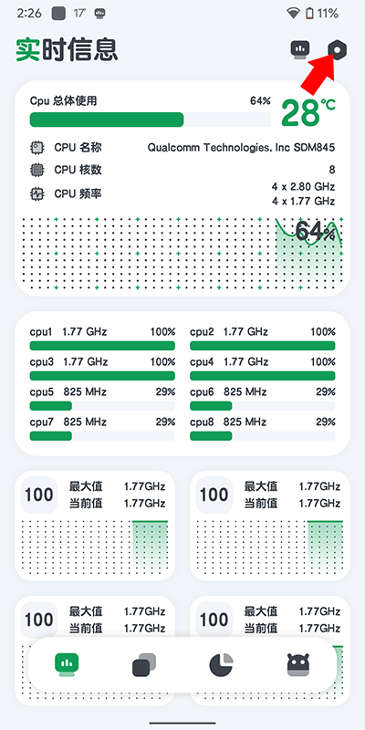 1、在本站下载并安装cpu监测,接着点击右上角齿轮按钮打开设置界面