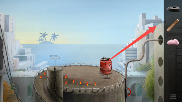 7、即可前往下一场景,点击左侧保存图标可以保存进度,点击右侧物品栏下方的三道横线,即可进入设置界面。