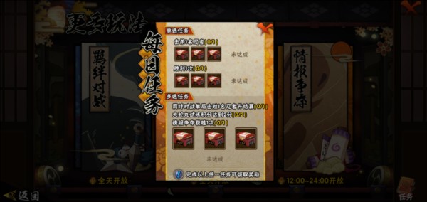 传说的忍者 章 奖励:24w铜币;24w铜币+2普招券;300金币+100体力